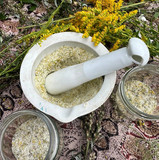 Unsere fleißige Gruppe wurde herzlich begrüßt von Förster Mike Kratz, seiner Kollegin Vivi und der bezaubernden Hündin Gora. Die Familien erfuhren viele spannende Hintergründe über das Gebiet, seine Geschichte und die besondere Kunstreihe „Steine ohne Grenzen“.